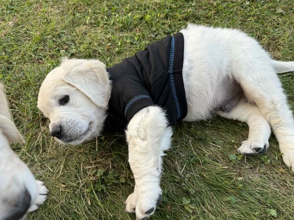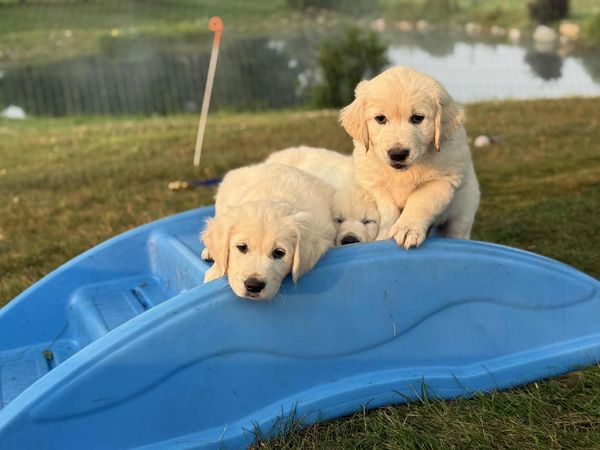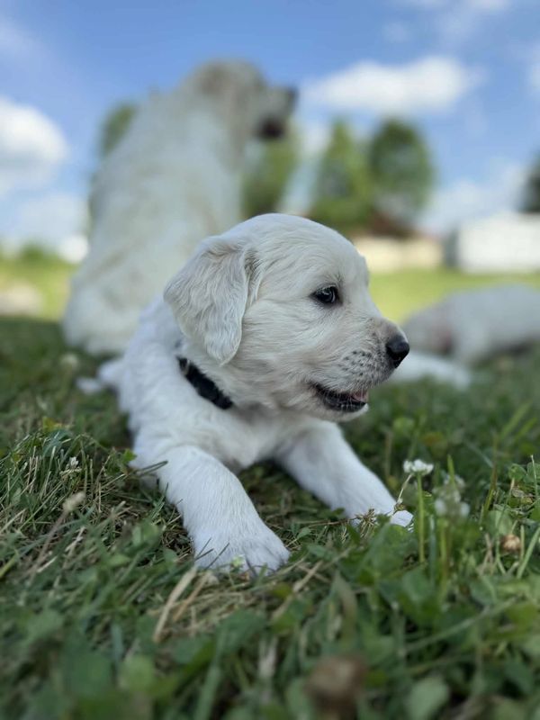 We offer champion bloodline, AKC English Cream Golden Retrievers.